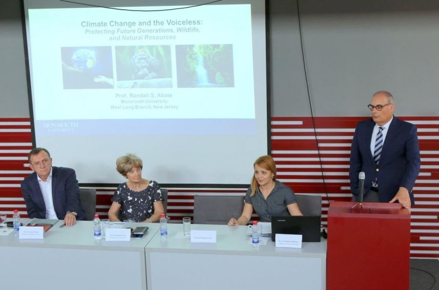 Profesor Abate je izdao pet knjiga i više od trideset novinskih članaka i poglavlja iz oblasti prava, na temu životne sredine. Gospodin Abate je na predavanju istakao problem globalnog zagrevanja koji ima uticaj na sve kontinente i značaj zaštite, onih koji ne mogu da govore u svoje ime, u okviru zakona o zaštiti životne sredine. Govorilo se o tužbama protiv država i multinacionalnih kompanija, koje doprinose negativnim globalnim klimatskim promenama.