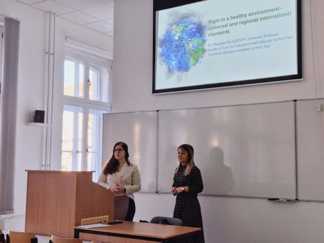 Prodekanica za međunarodnu saradnju, prof. dr Marijana Mladenov, je na poziv prof. dr Sziebig Orsolya Johanna učestvovala na navedenom događaju i održala predavanje na temu „Pravo na zdravu životnu sredinu – univerzalni i regionalni međunarodni standardi“. Tom prilikom prof. dr Marijana Mladenov je predstavila analizu relevantnih međunarodnih ugovora. Posebna pažnja je tokom predavanja posvećena razmatranju presuda Evropskog suda za ljudska prava i sagledavanju ekološke dimenzije prava na život i prava na nepovredivost doma. Studenti Fakulteta za pravo i političke nauke Univerziteta iz Segedina su pokazali visok stepen zainteresovanosti za samu temu predavanja, ali i poznavanja osnovnih postulata kako međunarodne zaštite ljudskih prava, tako i fundamentalnih prinicipa pravnog okvira zaštite životne sredine.