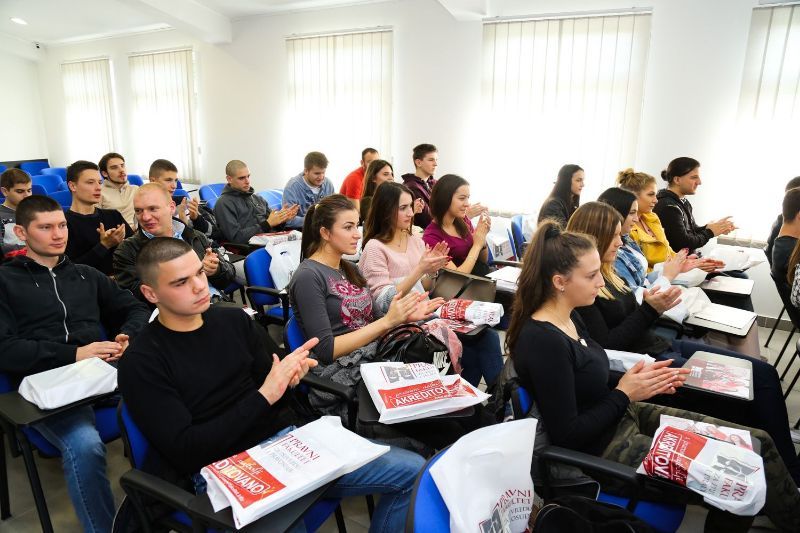 Studenti su sa velikim interesovanjem pratili predavanje i postavljali pitanja predsedniku Prekršajnog suda u Novom Sadu.