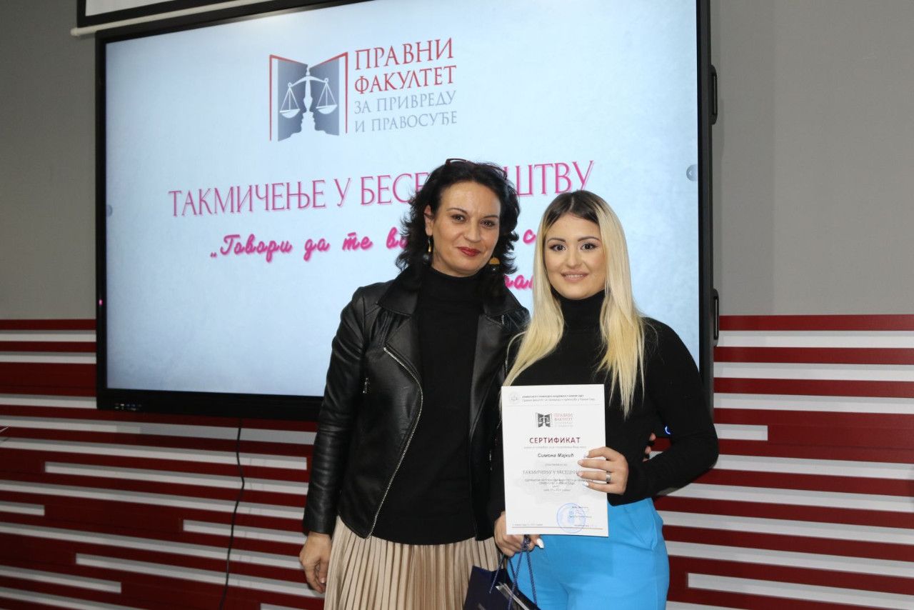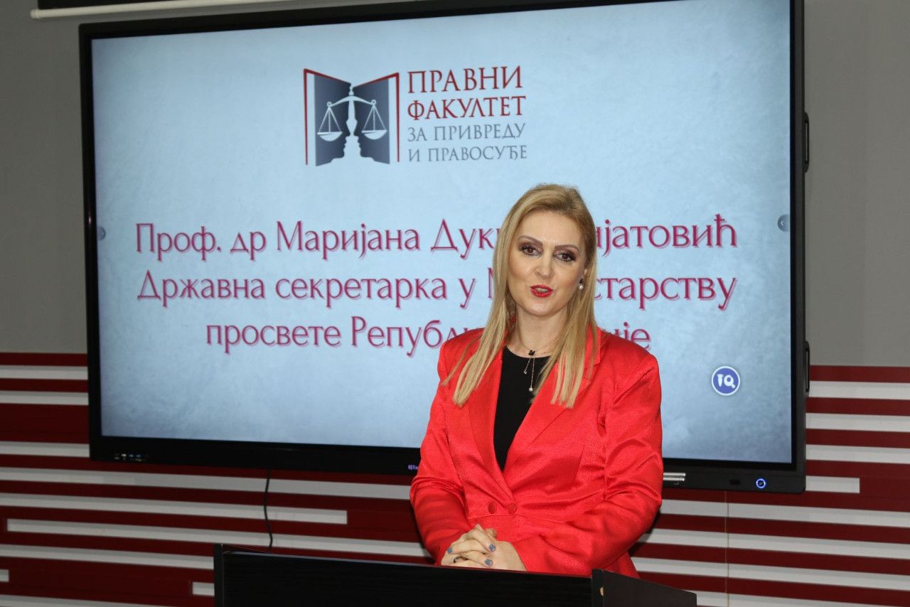 Prisutne je pozdravila i jedna od članica žirija sa izuzetno delikatnim zadatkom „odmeravanja“ i procenjivanja bezmalo jednako dobrih izlaganja bila je prof. dr Marijana Dukić Mijatović, državna sekretarka u Ministarstvu prosvete Vlade RS, koja je izrazila veliko zadovoljstvo mogućnošću da bude deo ovog uglednog takmičenja na jednoj visokoškolskoj ustanovi koja kao tradiciju ima takmičenje u besedništvu duže od jedne decenije. „Kao predstavnik Ministarstva prosvete mogu izuzetno afirmativno da se osvrnem na sam događaj i na učesnike, maturante i studente. I za jedne i za druge je od nemerljive važnosti negovanje oratorstva. Bez sistematizovanog znanja nema dobre besede, jer jedino tako možemo uveriti sagovornika u naše pravne, naučne, religijske i svake druge stavove. Zato besedništvo mora da se neguje, kao i tradicija, čitanje. Generacije novog milenijuma su vrlo vešte u digitalnoj tehnologiji koja nam je vrlo bitna i kojoj posvećujemo pažnju. Mnogo smo uložili i u digitalizaciju obrazovanje. Ali naš identitet, našu književnost, duh našeg naroda i besedništva treba negovati posebno kod mladih ljudi koji žele da se bave pravnom strukom, jer ovde se školuju buduće sudije, advokati, tužioci kojima je govor i reč alat u njihovom budućem zanimanju i primeni zakona“- izjavila je povodom ovog događaja državna sekretarka.