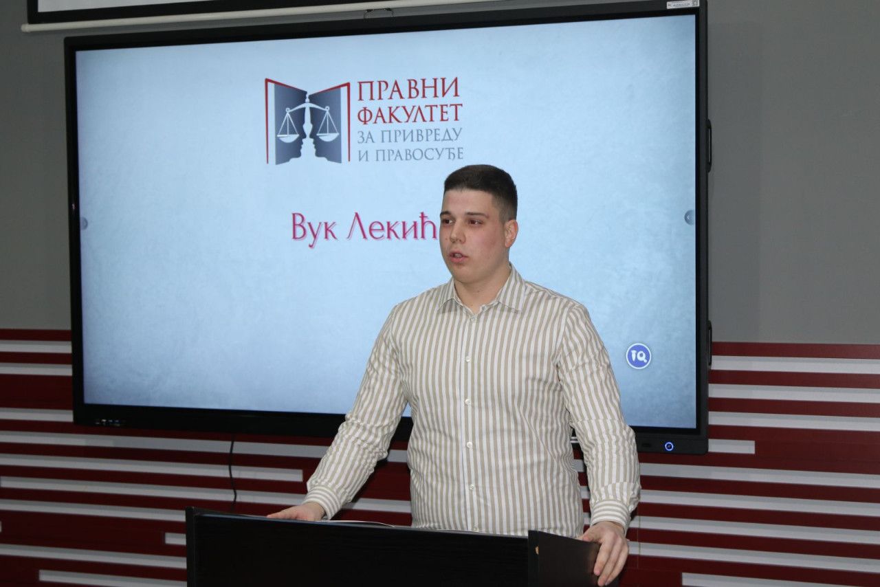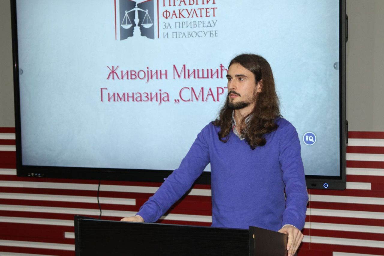 U ime organizacionog tima, obratio se prof. dr Nenad Stefanović, koji je istakao važnost ne samo kvalitetnog govora za sve pravnike, već i razumevanje zadate teme. „Današnji besednici, njih osmoro, prepoznali su koliki je značaj besedništva za jednog pravnika i prijavili se na takmičenje gde nije toliko važno pobediti, već učestvovati. Ja ne znam kakvi će oni biti pravnici, ali su odlični besednici.“ – istakao je prof. dr Nenad Stefanović i zahvalio se studentima na trudu, strpljenju i istrajnosti. Pored navedenog istakao je i da su za organizacioni tim svi takmičari pobednici, jer su u najboljem svetlu pokazali veštinu govorništva koju su razvijali kroz pripreme u trajanju od tri meseca. Organizacioni tim za takmičenje u besedništvu pored prof. dr Nenada Stefanovića, činile su doc. dr Maja Petrović, prodekan za kvalitet i razvoj, Tamara Krstić, direktor marketinga i PR menadžer Univerziteta Privredna akademija i Marija Sudar, profesor srpskog jezika i književnosti i urednica časopisa „Akademac“ Univerziteta Privredna akademija, a ove godine je organizacioni tim bio jači za još jednog člana i to prošlogodišnjeg pobednika ovog takmičenja, Danila Lučića.