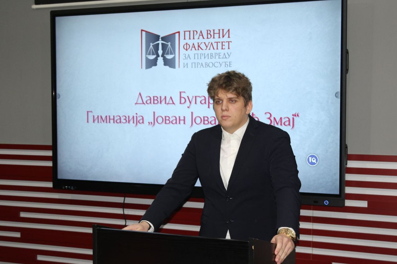Pre proglašenja pobednika prof. dr Biljana Đurović, izvela je „Karnalutijevu uzvišenu besedu“, a zatim dodelila svim učesnicima sertifikate. Prof. dr Marijana Dukić Mijatović, proglasila je pobednicu u kategoriji zadata tema i dodelila nagradu, dok je prof. dr Milan Počuča, proglasio pobednika u kategoriji slobodna tema i dodelio nagradu pobedniku. Nikolina Grahovac, studentkinja druge godine Pravnog fakulteta za privredu i pravosuđe, VŠJ Subotica je osvojila popust od 30% na školarinu za narednu školsku godinu i putovanje za dvoje u Beč, dok je maturant David Bugarski iz gimnazije „Jovan Jovanović Zmaj“ za prvo mesto nagrađen popustom od 50% za prvu godinu Pravnog fakulteta za privredu i pravosuđe i tablet računarom.