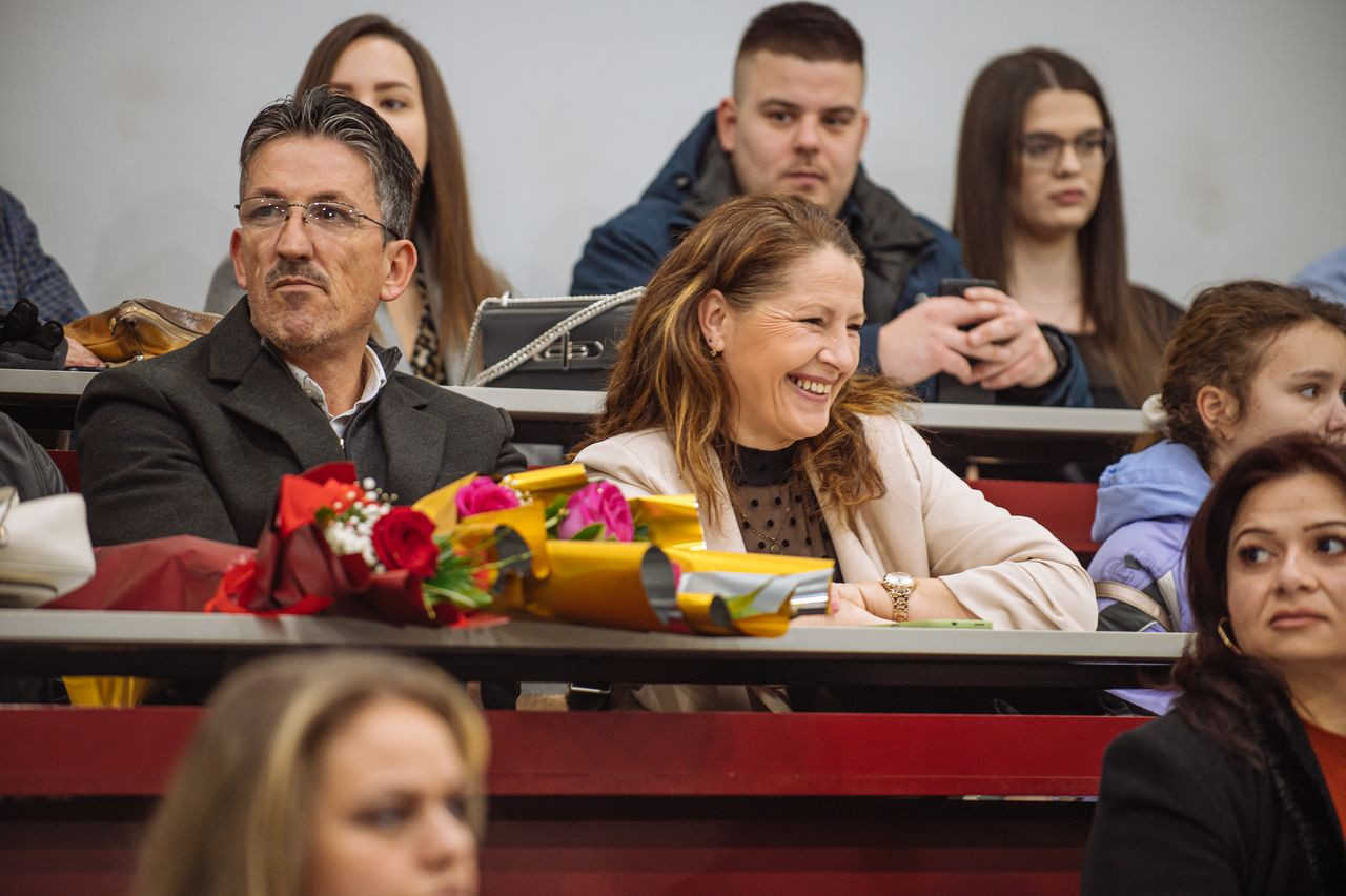 Moramo znati ko smo i odakle potičemo, ali isto tako moramo biti svesni da zemlja iz koje dolazimo ima premalo svojih građana da bi ikada više pomislili na tako nešto kao što je rat. Konfrontacije sa velikima odneli su previše ljudskih života. Srbija je prošle godine imala najmanji broj rođene dece u poslednjih 80 godina. Zašto ovo govorim? Upravo zbog toga što je sada za vas nakon završetka fakulteta drugi najvažniji zadatak stvaranje porodice. U njoj treba da nađete ljubav, podršku, nadu u budućnost i smisao daljeg života. Vilijam Volis divno primećuje: “Ruka koja kolevku ljulja je ruka koja vlada svetom.“ Potpuno delim ovakav stav. Snaga svakog od nas upravo proizilazi iz našeg porodice i porodičnog stabla. Bez porodice ni nas ne bi bilo. Zato najveću zahvalnost i poštovanje upravo dugujemo našim roditeljima koji su se trudili i koji su, posle vas, najzaslužniji za uspeh koji danas obeležavamo.