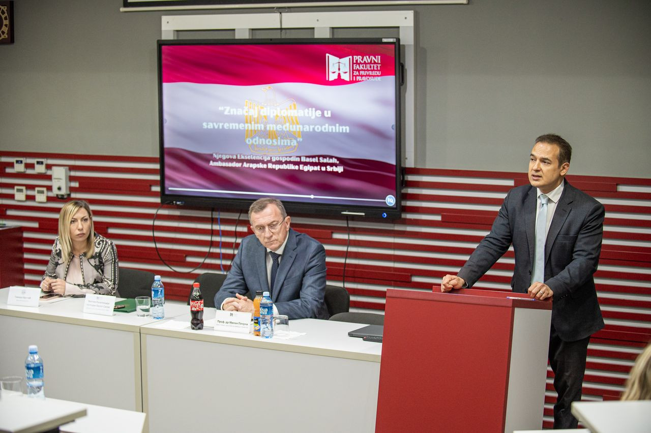 Njegova Ekselencija gospodin Basel Salah, Ambasador Arapske Republike Egipat u Srbiji održao je predavanje na Pravnom fakultetu za privredu i pravosuđe u Novom Sadu