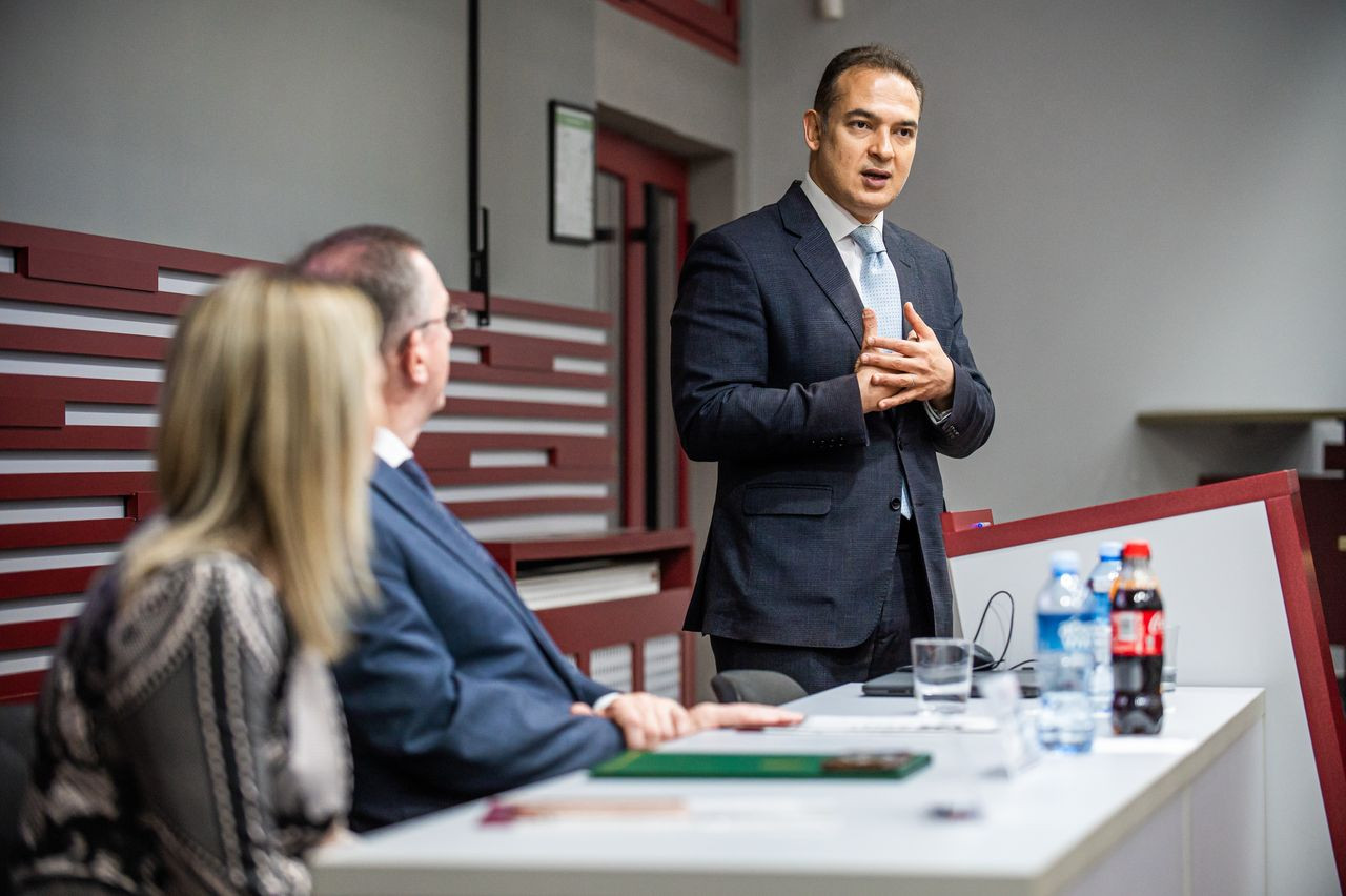 Njegova Ekselencija gospodin Basel Salah održao je predavanje na temu: “Značaj diplomatije u savremenim međunarodnim odnosima” i između ostalog rekao kako se pretpostavljalo da će dolazak interneta i upotreba socijalnih mreža, diplomatiju i ambasadore zapravo učiniti nepotrebnim. “Ljudi su više nego ikada informisani o dešavanjima na svetskoj sceni upravo preko svih tih društvenih mreža, ali vidimo da nam je diplomatija preko potrebna, s obzirom na dešavanja koja se tiču ratova koji se vode trenutno u svetu.”