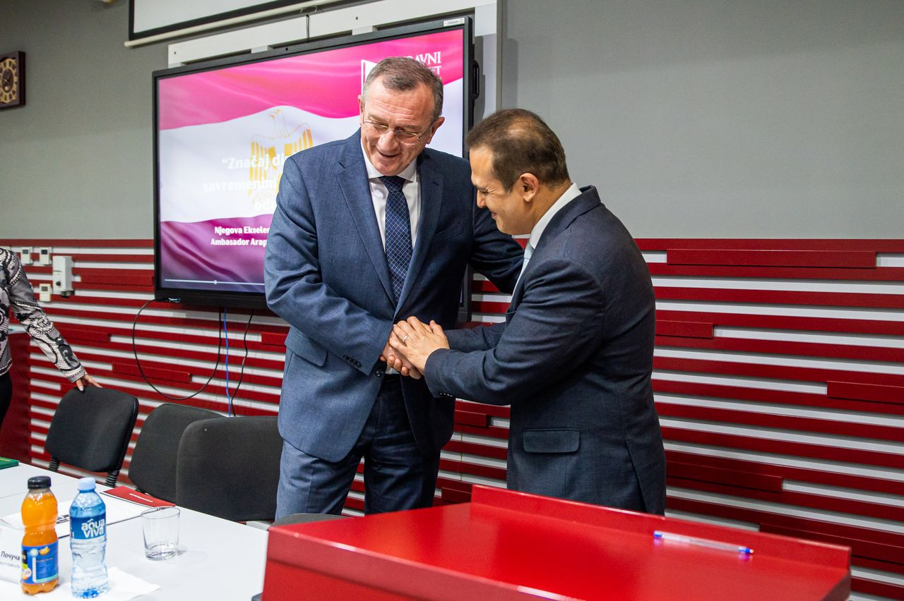 Na kraju predavanja, prof. dr Milan Počuča istakao je da je Pravni fakultet za privredu i pravosuđe dogovorio saradnju sa Ambasadom Arapske Republike Egipat, a prvi korak te saradnje upravo je predavanje koje je organizovano na našem Fakultetu.