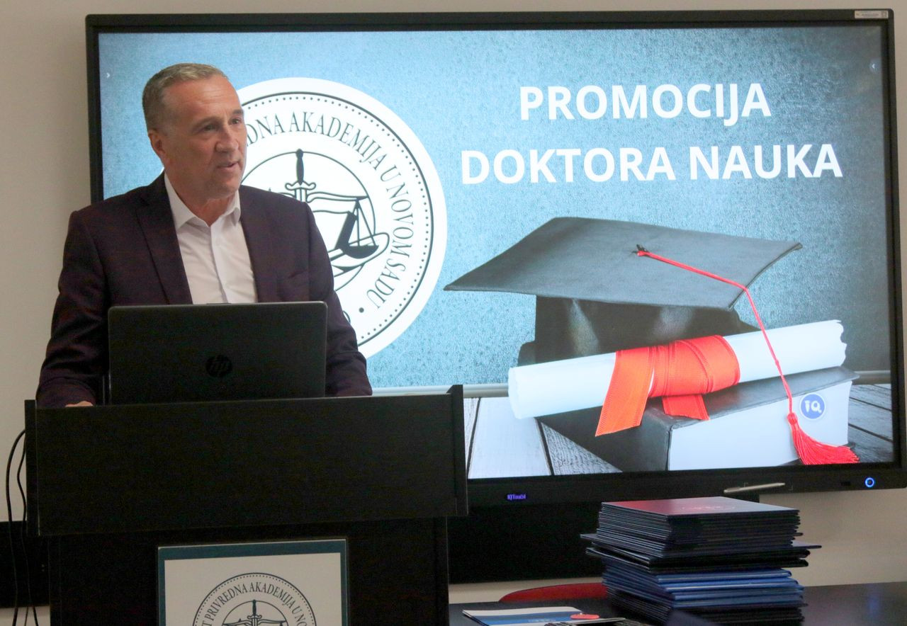 Sve prisutne pozdravio je prof. dr Dragan Soleša, rektor Univerziteta Privredna akademija u Novom Sadu, a svojim prisustvom svečanost je uveličao i prof. dr Milan Počuča, prorektor za nauku Univerziteta Privredna akademija u Novom Sadu i dekan Pravnog fakulteta za privredu i pravosuđe. Svakog kandidata, kao i naučne doprinose disertacija, predstavili su njihovi mentori. Nakon predstavljanja zamenik rektora Univerziteta, prof. dr Dragan Soleša, svečano je uručio diplome i promovisao kandidate u doktore nauka.