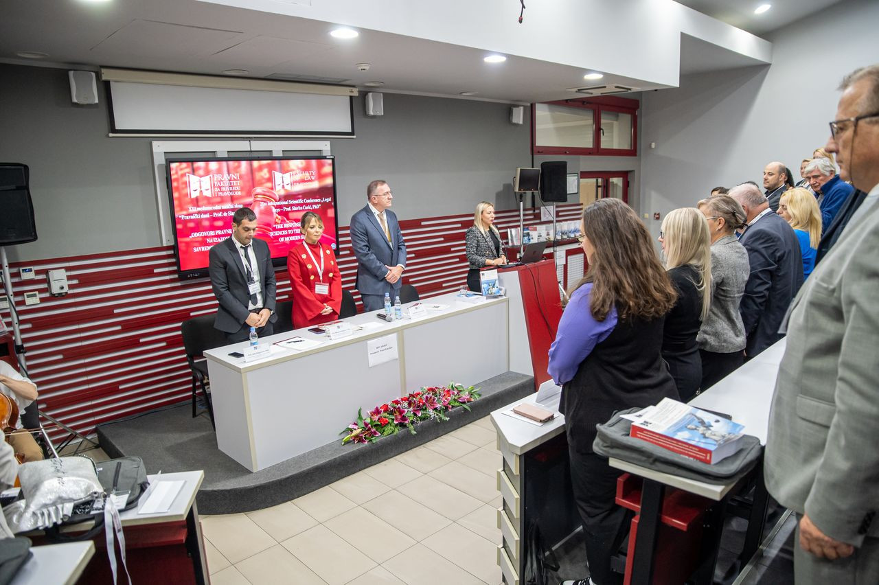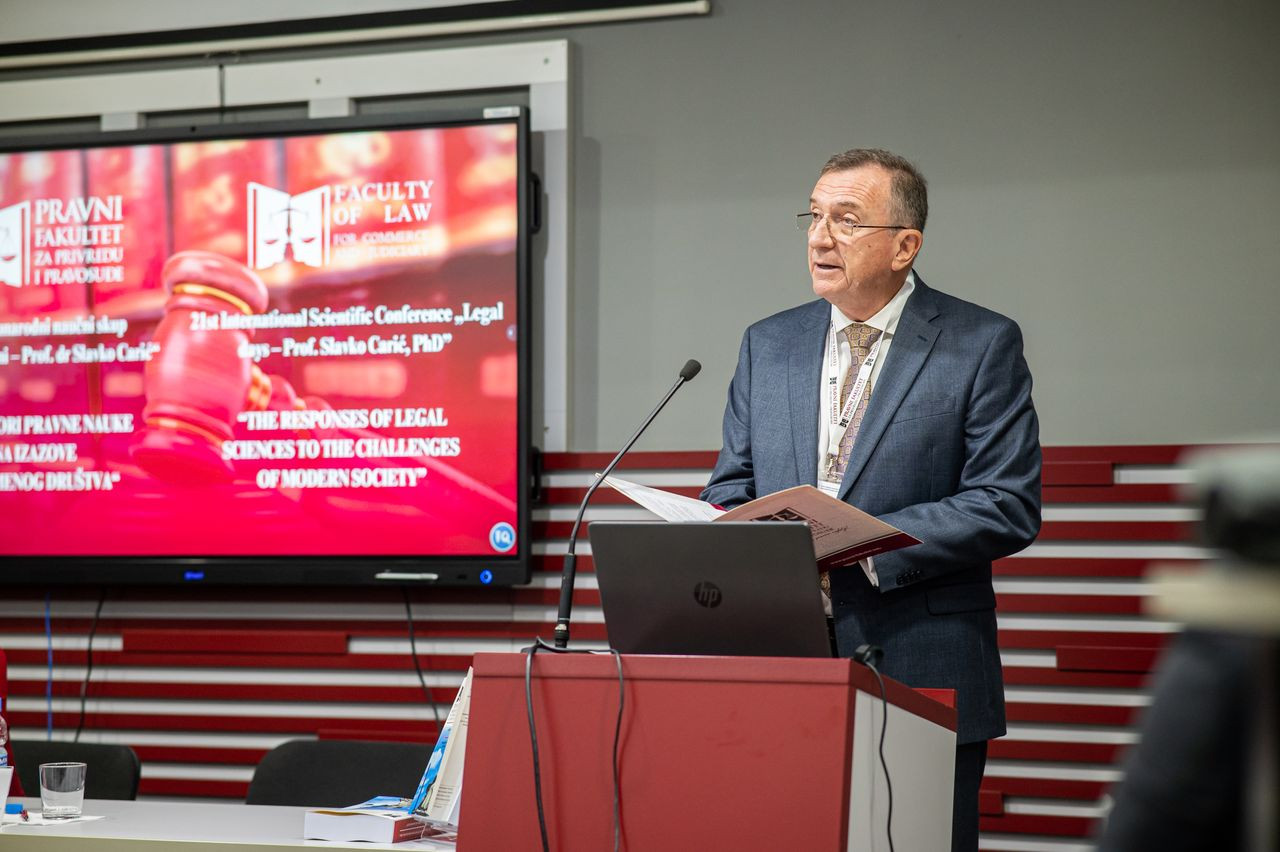 Prof. dr Milan Počuča, dekan Pravnog fakulteta za privredu i pravosuđe istakao je da je događaj posvećen osnivaču fakulteta, prof. dr Slavku Cariću: „Kao naučno istraživačka organizacija koja duže od dve decenije organizuje ovu konferenciju, svesni smo odgovornosti koju nosimo baštineći ideju organizatora i prvog predsednika naučnog odbora pokojnog prof. dr Slavka Carića. Trud koji smo uložili u pripremu ovogodišnje konferencije bio bi uzaludan da nema vas koji ste se odazvali i priložili svoje radove i odvojili dragoceno vreme da se vidimo i da u naredna dva dana razgovaramo, analiziramo, polemišemo i predložimo moguća rešenja u okviru pravne nauke kojom se bavimo.”