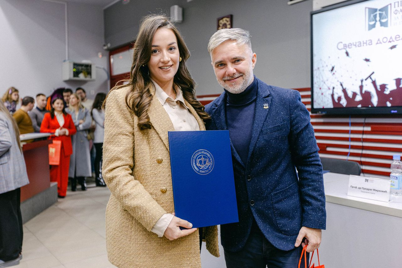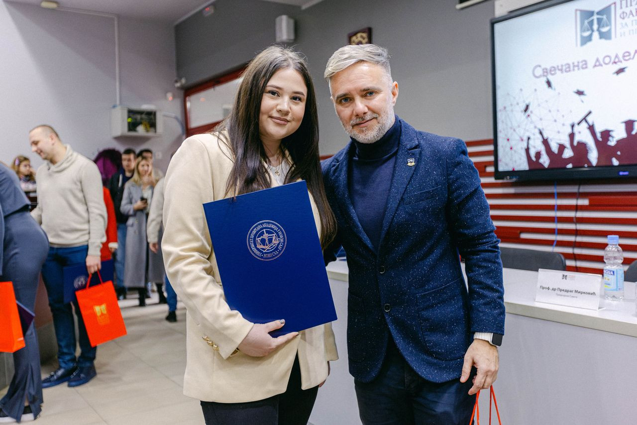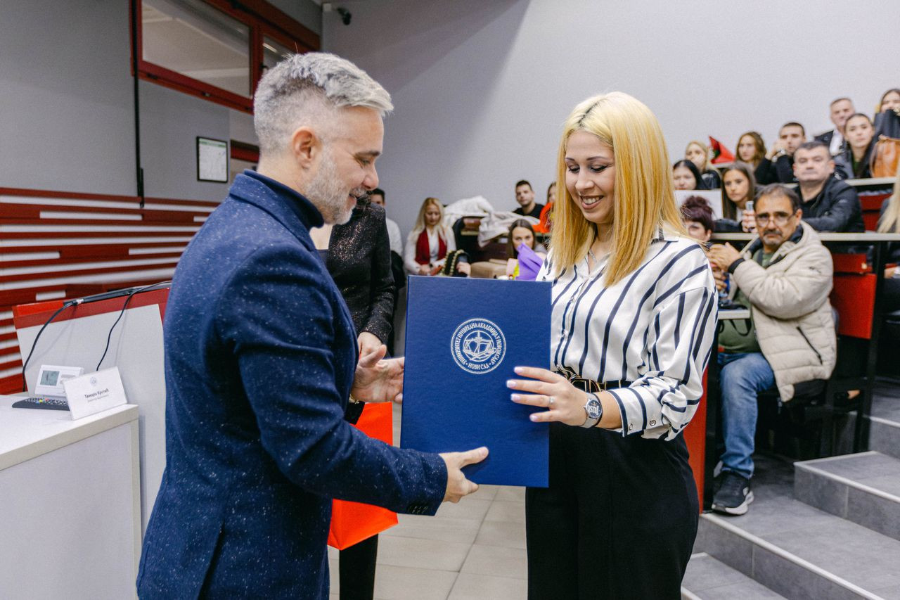 Svečana dodela diploma održana je u ponedeljak, 27. januara 2025. godine u amfiteatru Pravnog fakulteta za privredu i pravosuđe u Novom Sadu.