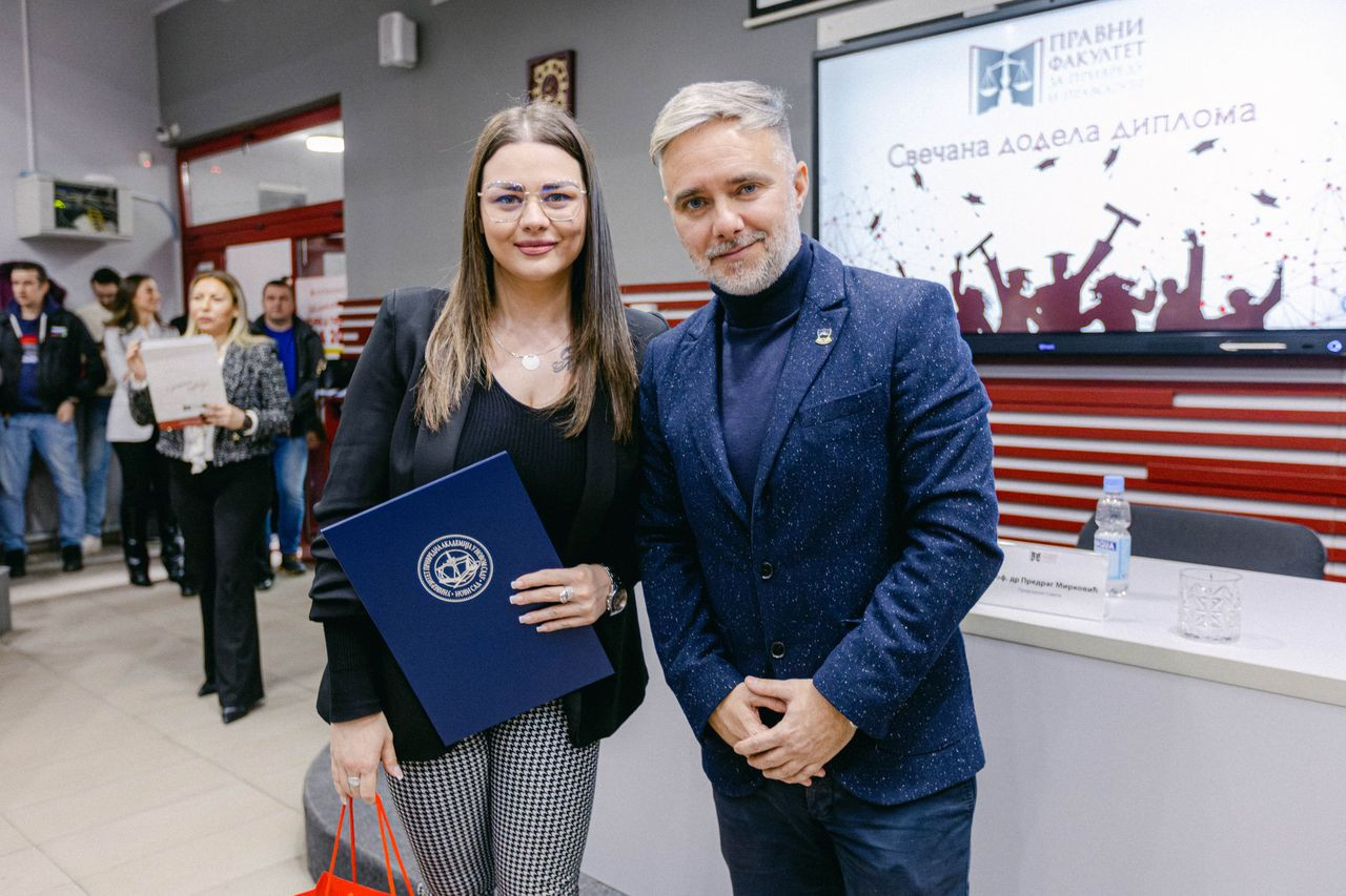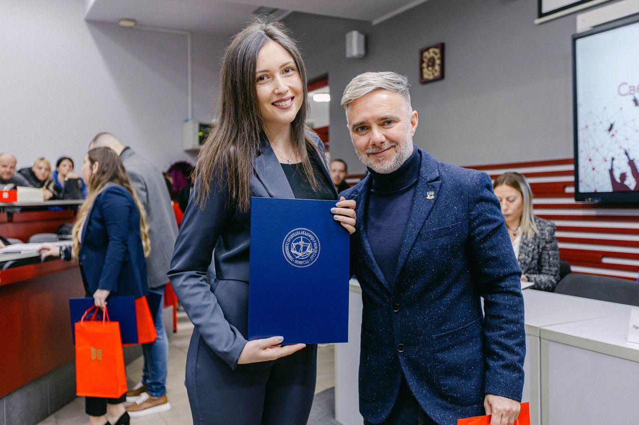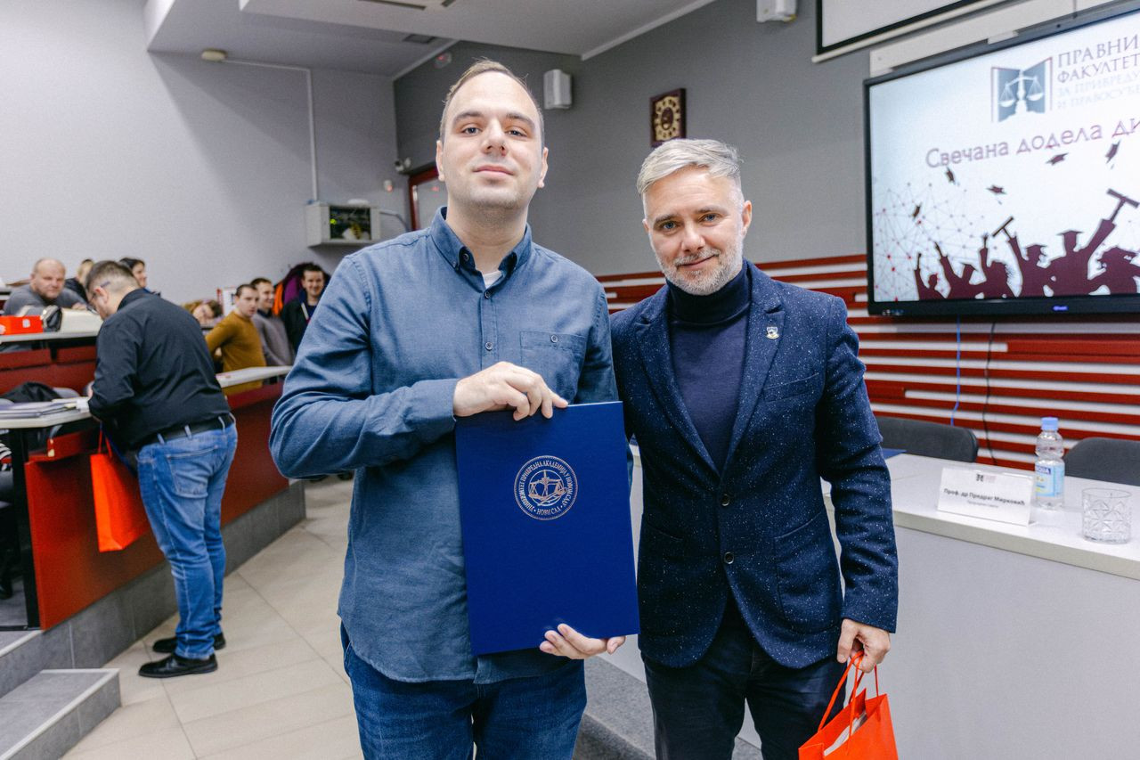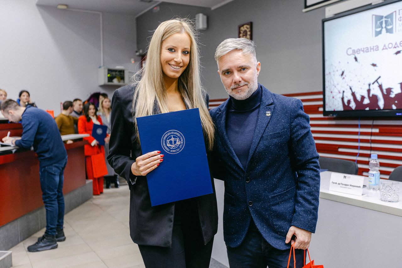 Svečana dodela diploma održana je u ponedeljak, 27. januara 2025. godine u amfiteatru Pravnog fakulteta za privredu i pravosuđe u Novom Sadu.