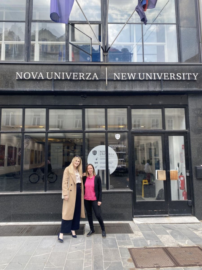 Doc. dr Nada Đuričić, docentkinja na Pravnom fakultetu za privredu i pravosuđe u Novom Sadu i Tamara Crevar, saradnica u nastavi na istom fakultetu i član Kancelarije za međunarodnu saradnju Univerziteta Privredna akademija u Novom Sadu, realizovale su mobilnost na Evropskom pravnom fakultetu Univerziteta Nova Univerza u Sloveniji, u periodu od 19. do 20. maja 2025. godine, u okviru Erasmus+ programa mobilnosti.