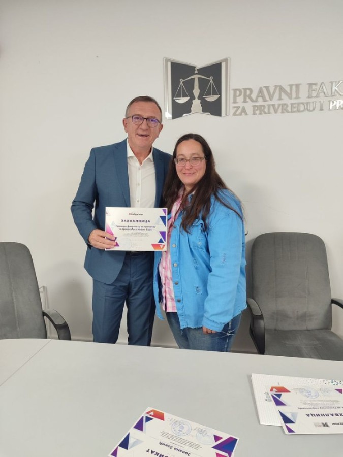 Posebne zahvalnice doc. dr Dragana Ćorić uručila je organizatorima i predavačima, kao i Pravnom fakultetu za privredu i pravosuđe, koji je zajedno sa Pokrajinskim zaštitnikom građana – ombudsmanom organizovao Školu ljudskih prava.