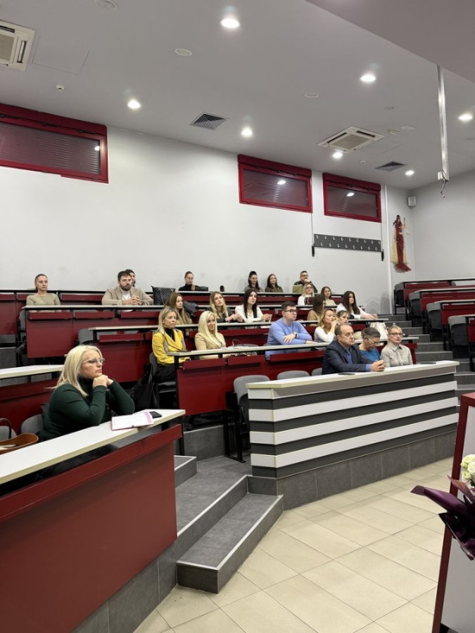 U ime rukovodstva Fakulteta obratila se i prof. dr Maja Petrović, prodekan za nastavu, koja je studentima predstavila studijske programe na drugom stepenu studija i naglasila važnost pažljivog izbora izbornih predmeta u skladu sa ličnim interesovanjima i profesionalnim ambicijama. Osvrnula se i na značaj proaktivnog pristupa studijama, kao i na podršku koju Fakultet pruža studentima u procesu obrazovanja i stručnog usavršavanja.